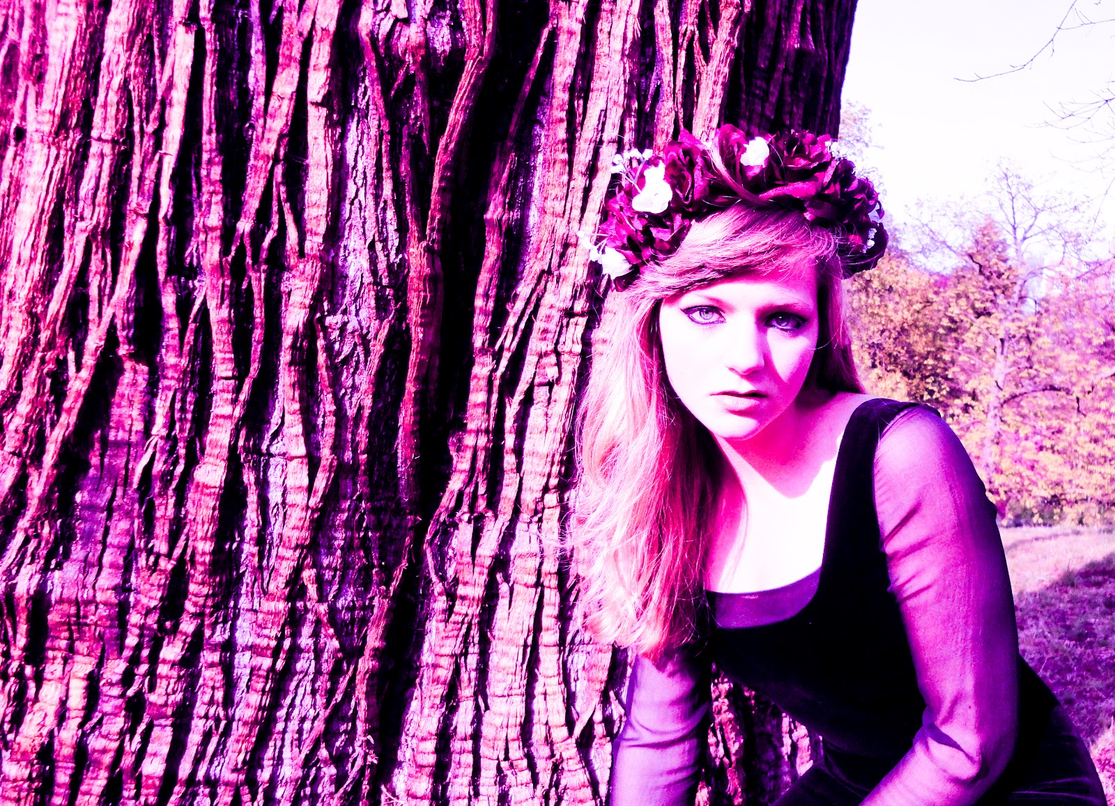 Masha Mel, Lana Del Rey and the ice queen inspired my "Evil and Darkness" photography shoot. I first created a floral head band made from red fake flowers, because red is a colour often associated with evil. I quite like the outcome of my photography, and went on to further edit the best of them to produce photography to a good standard despite having a normal household camera.